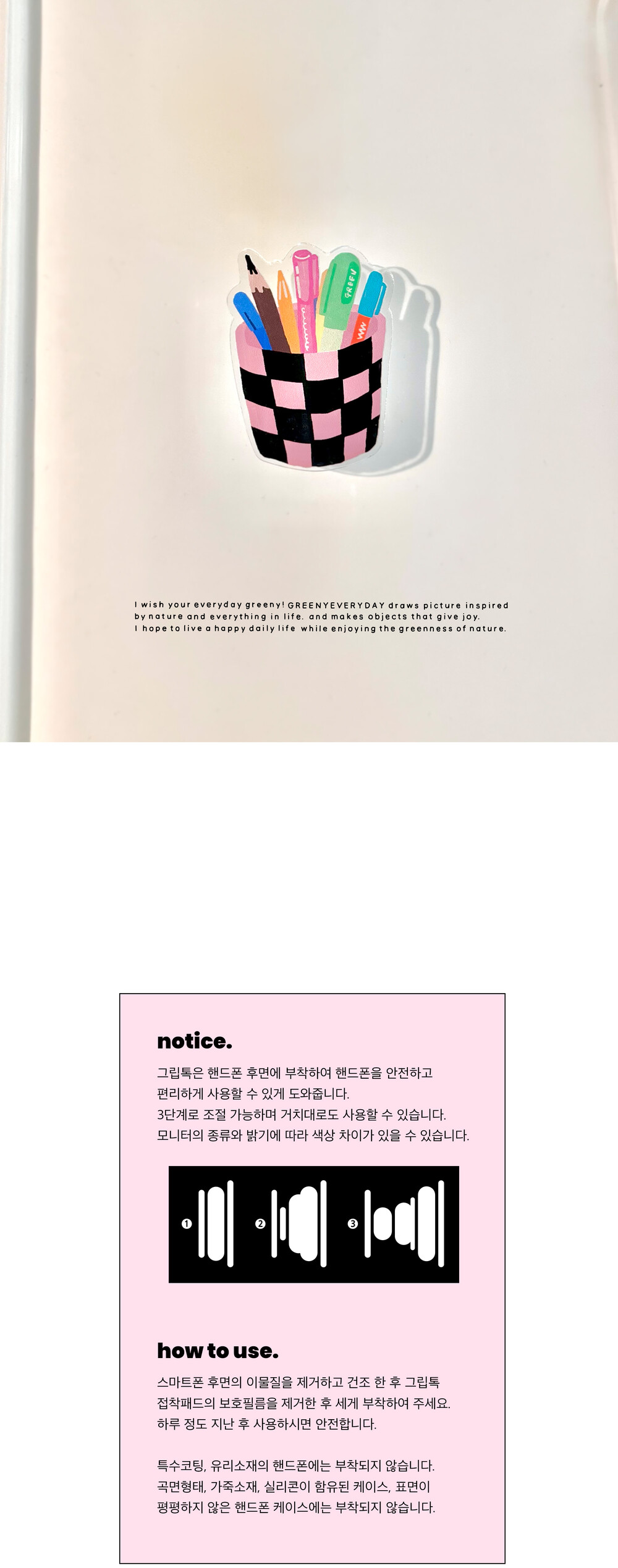 아크릴로 제작된 그립톡입니다.